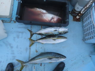 午前船 マダイ(延長) 0.6キロ〜3.5キロ 船中 21枚 4.5キロ ブリ 他 大サバ多数あり |