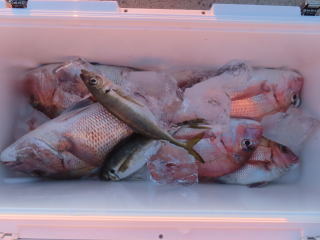 | 午前船 マダイ(延長) 0.6キロ〜1.5キロ 2.1キロ 2.5キロ 4.6キロ 船中 二人で 22枚 トップ 12枚 他 大アジ サバ カツオ ウマズラ ワラサ |