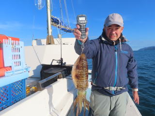 | 午後船 マダイ 0.5キロ〜2.1キロ 船中8枚 他アジ サバ 夜船 アオリイカ 胴長 16センチ〜26センチ 船中15杯 |