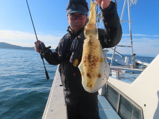 | 午前船 泳がせ ヒラメ 2.1キロ 4.8キロ 船中2枚 他 大型クロソイ キジハタ 午後船 マダイ 1.0キロ〜2.1キロ船中12枚 他 大アジ ハナダイ |