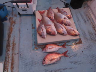 | 午前船 マダイ(延長) 0.8キロ〜3.5キロ 船中 4人で28枚 トップ 17枚 バラシ多数あり |