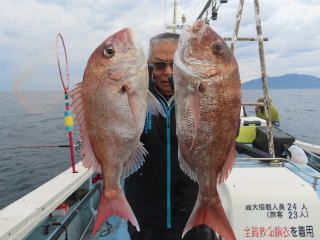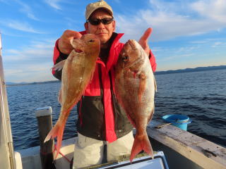 | 午前船 マダイ(延長) 0.5キロ〜2.6キロ 船中二人で19枚 トップ12枚 他 アジ サバ |