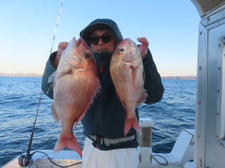 | 午前船 真鯛(延長) 1kg〜5.8kg 2人で船中7枚 |